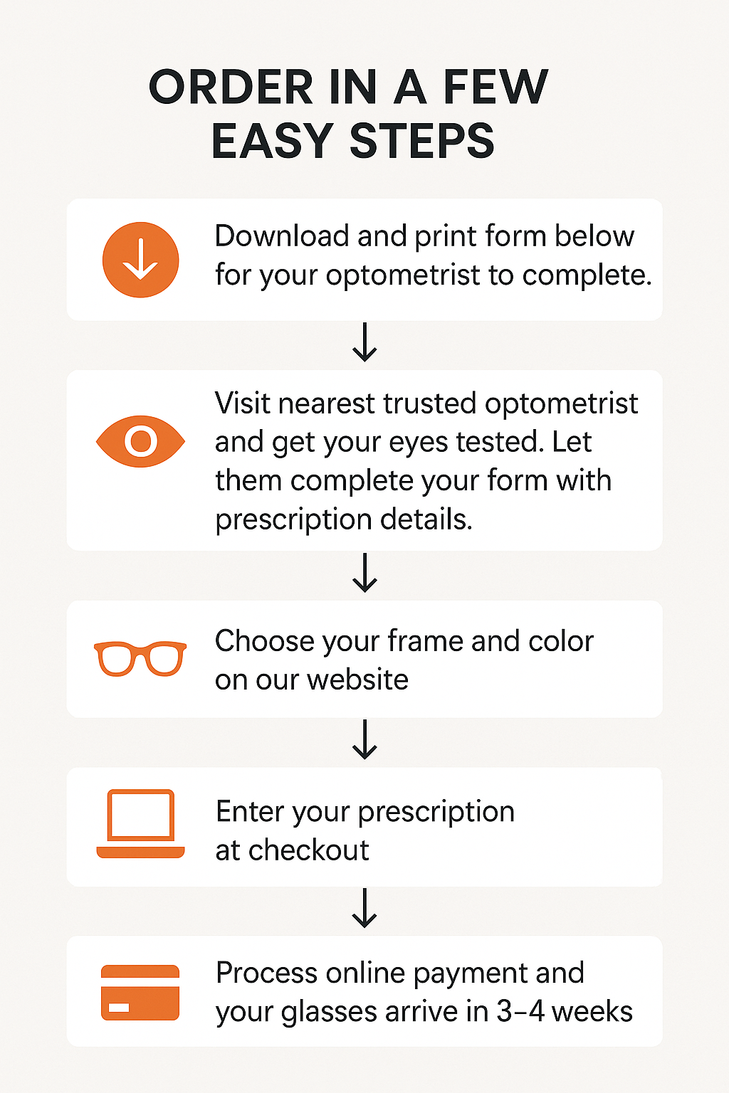 Your custom-made eyewear is delivered within 3–4 weeks nationwide. You’ll receive tracking details once your order is dispatched.
